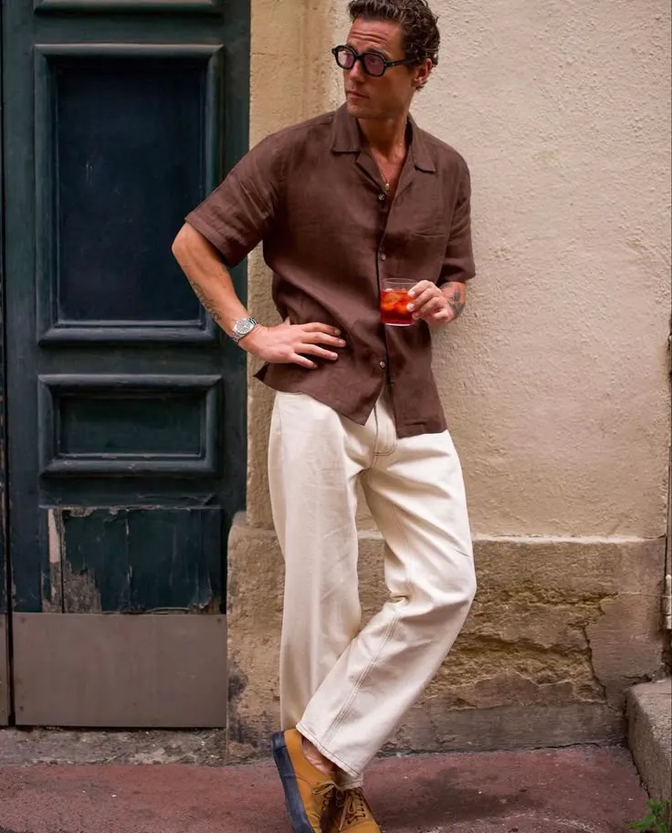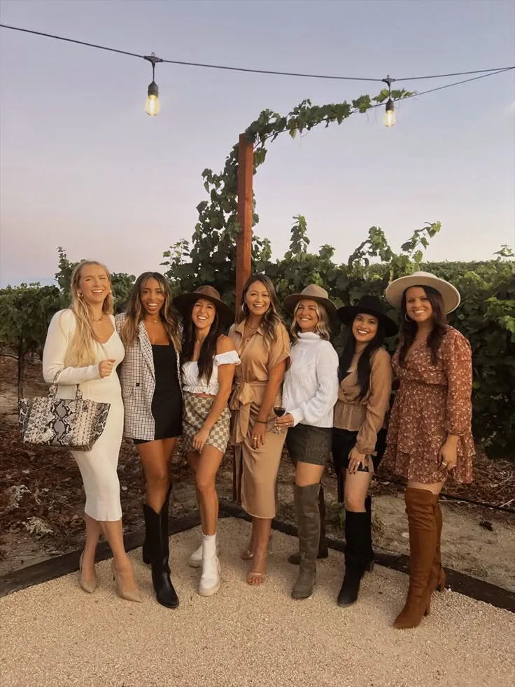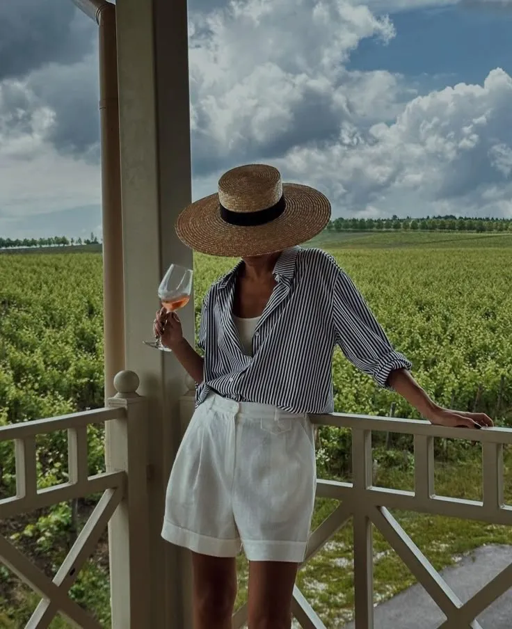 Nos encontramos en un viñedo por la tarde, así que el look ideal es fresco, canchero y cómodo para disfrutar al aire libre sin perder el estilo.